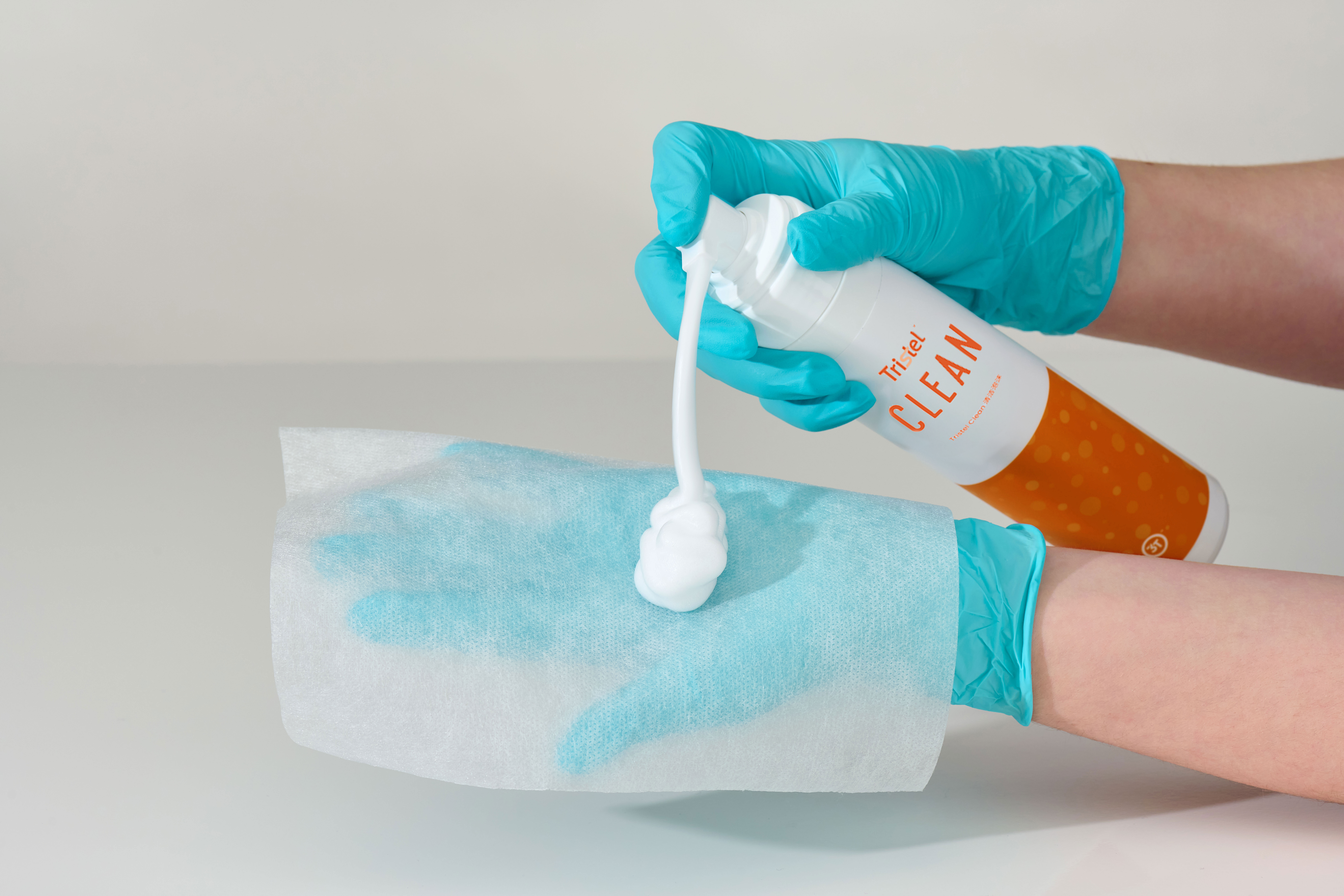 Tristel CLEAN 清洁泡沫设计轻便、操作简便,专为床旁即时清洁设计。无需浸泡,即可在医疗场所高效便捷地使用。